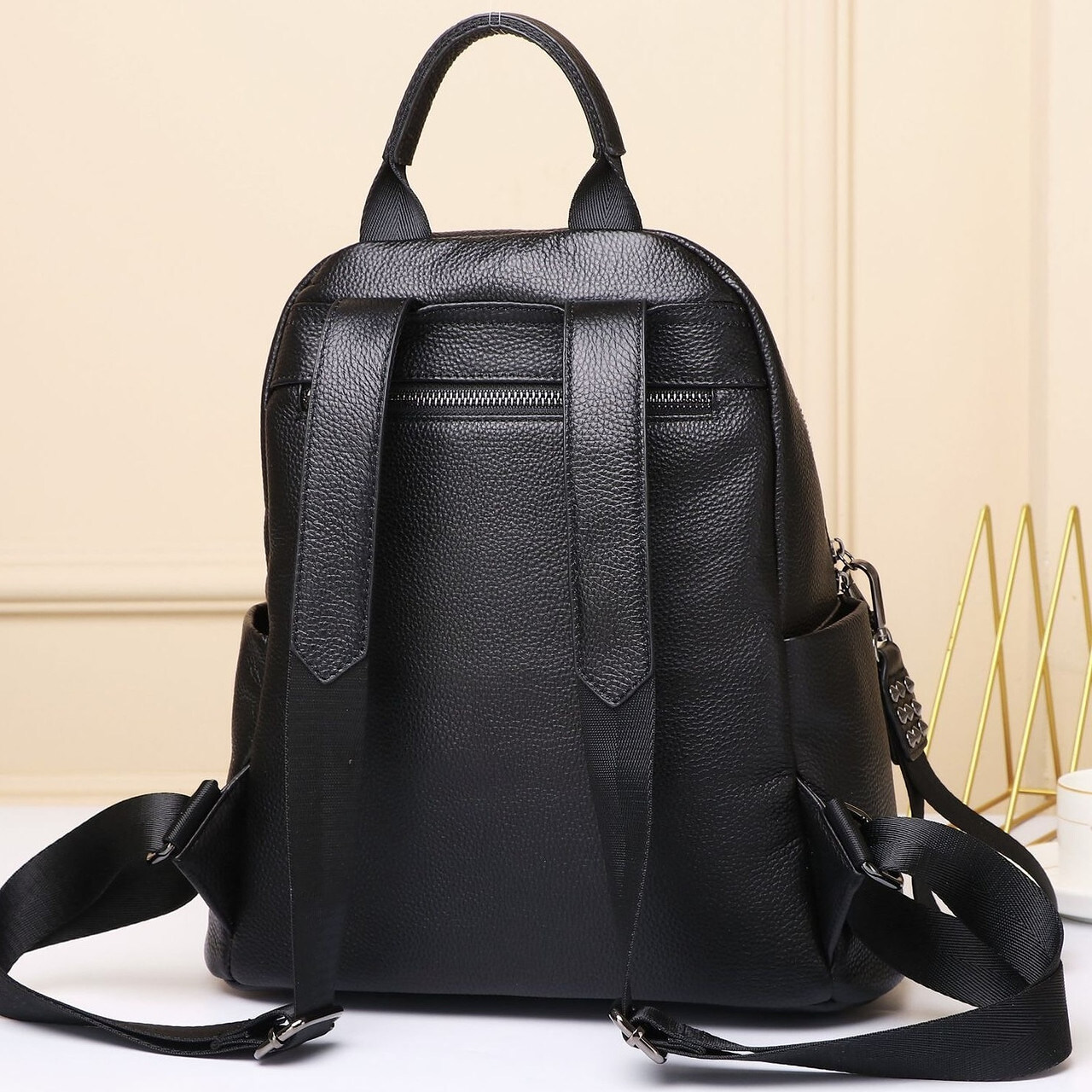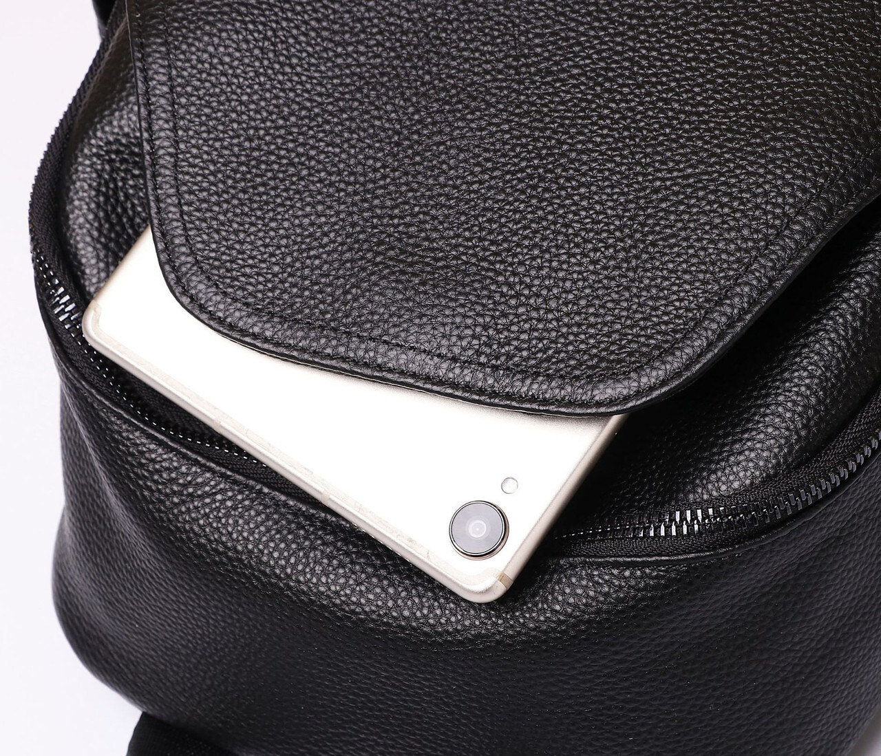 Стильный аксессуар для девушек и женщин, необходимый для повседневной жизни, которая становится более динамичной, активной и скоростной. В такой практичный и функциональный рюкзак позволит разместить много разнообразных, необходимый вещей. Изготовлен из натуральной кожи, в практичном черном цвете, который будет уместен в любой цветовой гамме гардероба. Вмещает документы формата А5.