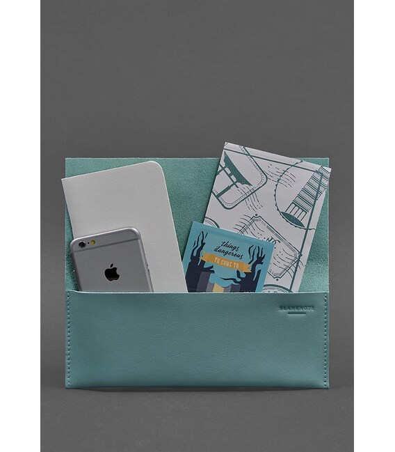 Линейка «Тиффани» – это ласковый танец солнечных зайчиков, бесконечная свежесть утреннего бриза, нежный шепот волн на Лазурном берегу. Это больше, чем просто бирюзовые аксессуары, – это ощущение блаженной беззаботности и утонченной роскоши.Изысканный лазурно-голубой оттенок стал знаменитым на весь мир, когда ювелирная компания Tiffany & Co. выбрала его своим фирменным цветом. С тех пор он ассоциируется с элегантностью, женственностью и благополучием.Для новой линейки мы использовали краст. Краст (от англ. crust – «кора») – это натуральная кожа средней толщины, с умеренным блеском и едва заметным естественным рисунком на поверхности. Так что пусть вас не смущает внешняя мягкость – аксессуары «Тиффани» созданы на годы.Но самое главное, каждый раз, держа в руках какой-то предмет из этой коллекции, вас будет наполнять легкость, романтичность и вдохновленность. Как это объяснить? Не знаем. Просто вот такая она, магия ручной работы и оттенка «Тиффани»Яркий представитель линейки Тревел-кейс 1.0 «Тиффани»Едете в долгожданный отпуск? Предлагаем взять с собой надежного хранителя Ваших билетов и документов :) Это холдер для документов удобного размера, в котором поместятся посадочные талоны (или железнодорожные билеты), паспорта, деньги и масса других полезных вещей, которые должны быть всегда под рукой в путешествии. Холдер сделан полностью вручную из цельного куска очень плотной (2 мм) натуральной кожи. Закрывается он на кожаный хлястик, который крепится двумя люверсами, по совместительству формирующими держатель для канцелярских принадлежностей.Приятной Вам поездки!Гарантия на тревел-кейс - 3 года с момента покупки.Фурнитура и комплектация может быть изменена производителем