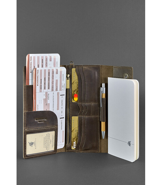 Стильный и лаконичный органайзер для документов выручит не один раз и станет надежным другом в путешествии. С таким тревел-кейсом Вы точно ничего не забудете дома, так как есть отдельное место для каждой вещи. Много отделений для билетов, паспортов и прочих документов. Карман на молнии для мелких денег и разной мелочи. Слоты для пластиковых карт, держатель для ручки и даже небольшие кармашки для сим-карт. Все в одном месте и все под рукой.Кстати, тревел-кейс удобно носить в руке, так как в комплекте к нему предусмотрен небольшой съемный ремешок, который поможет легко фиксировать аксессуар на запястье.И естественно, такой многофункциональный аксессуар пригодиться не только в путешествиях, но и в повседневной жизни будет очень удобен. Благодаря лаконичному дизайну и универсальному цвету, он легко впишется в разные образы, не нарушая их целостность. Клатч-органайзер можно использовать и как самостоятельный аксессуар, и можно носить в сумке в качестве портмоне.Изготовлен аксессуар из натуральной кожи Crazy Horse. Эта кожа хорошо держит форму, достаточно плотная и имеет красивую матовую поверхность. Особенно стильно выглядит кожа Crazy Horse в коричневом цвете.Содержание подарков внутри тревел-кейса может незначительно отличаться от того что на фото.Гарантия на аксессуар - 3 года с момента покупки.ВНИМАНИЕ! Выделка данной кожи предполагает естественное появление на ней царапин и потертостей в ходе использования! От этого изделие становится более индивидуальным и приятным, это оценят настоящие поклонники винтажного стиля:) А так же первое время кожа может краситься при сильном трении об другие предметы - это особенность её выделки, постепенно этот эффект уменьшается, кожа полируется и приобретает чуть глянцевый эффект.Фурнитура и комплектация может быть изменена производителем