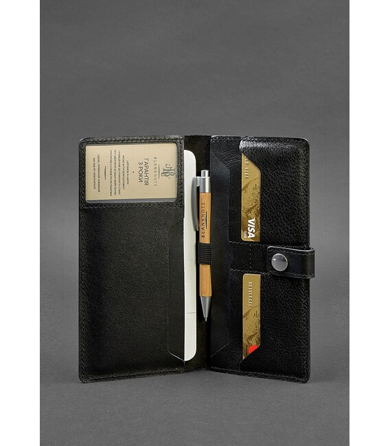 Этот стильный органайзер для путешествий надежно защитит документы и посадочные талоны, а также подчеркнет статус и стиль обладателя. Аксессуар сделан на 100% из натуральной кожи, что не только выглядит хорошо, но и гарантирует долгий срок службы. Тревел-кейс сшит полностью вручную.Лаконичный дизайн и универсальный черный цвет идеально подойдет и мужчинам, и женщинам.Внутри тревел-кейса имеется пять отделений для пластиковых карт, одно отделение для паспорта, два больших отделения для купюр и блокнота. На задней стенке аксессуара располагается дополнительный карман на молнии, который можно использовать для разных мелочей. Также внутри тревел-кейса предусмотрен держатель для ручки.Закрывается аксессуар на хлястик с кнопкой.Такой аксессуар - отличный вариант корпоративного подарка для Ваших коллег, партнеров по бизнесу и клиентов!Содержание подарков внутри тревел-кейса может незначительно отличаться от того что на фото.Гарантия на аксессуар - 3 года с момента покупки.Фурнитура и комплектация может быть изменена производителем