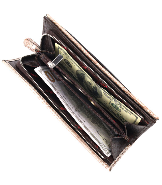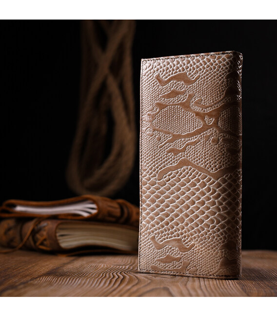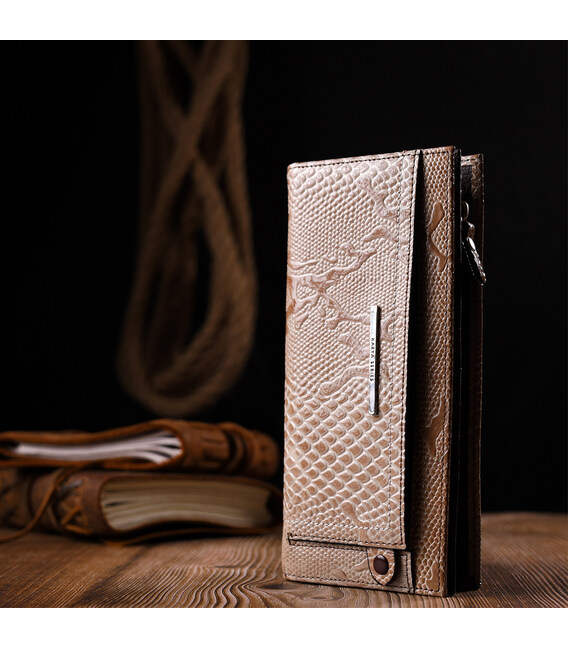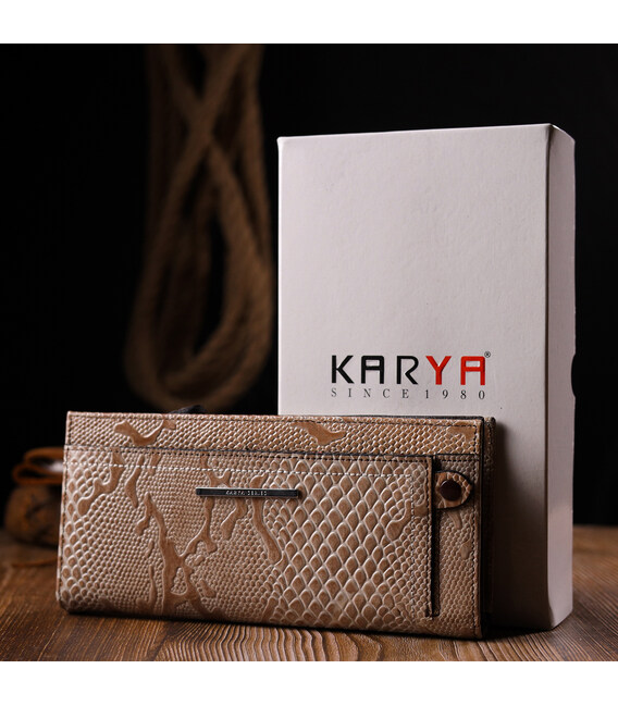 Описание Стильный женский горизонтальный кошелек из натуральной фактурной кожи KARYA 21101 Бежевый