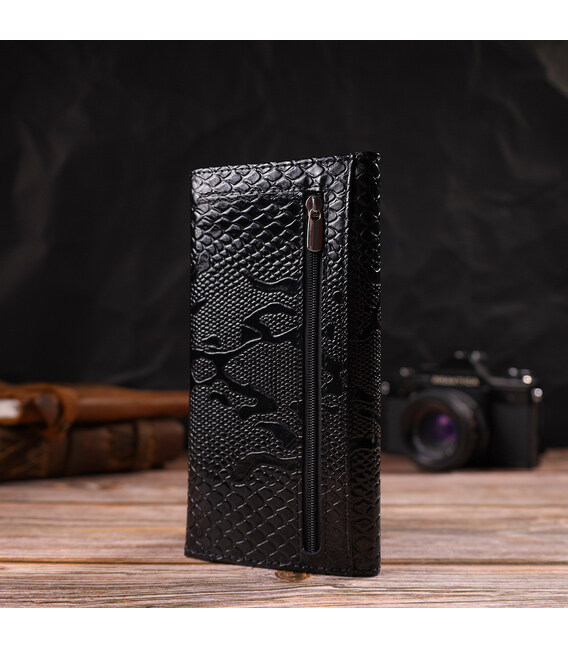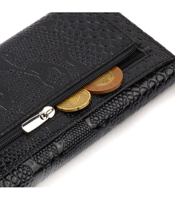 Описание Фактурное женское лакированное портмоне из натуральной кожи с тиснением под змею CANPELLINI 21700 Черное