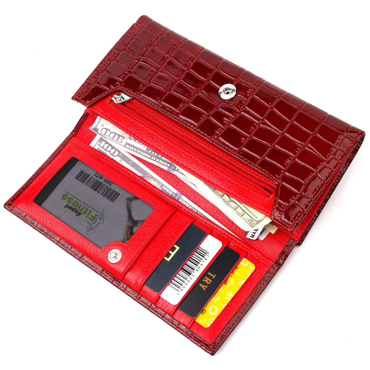 Яркий женский кошелек из натуральной кожи с тиснением под крокодила снаружи и в зернистой натуральной коже внутри. Складывается аксессуар пополам, закрывается клапаном на кнопку. Особенностью кошелька есть наличие блока для кредитных карт, что закрывается хлястиком на магнит. Качественная фурнитура дополняет и украшает изделие. Такой кошелек из натуральной кожи - это идеальный вариант на каждый день для тех, кто ценит качество, удобство и комфорт, а также будет отлично дополнять Ваш повседневный образ. Упакован аксессуар в фирменную коробку и пакет бренда. Изделия из натуральной кожи всегда будут отличным подарком для близкого человека.
