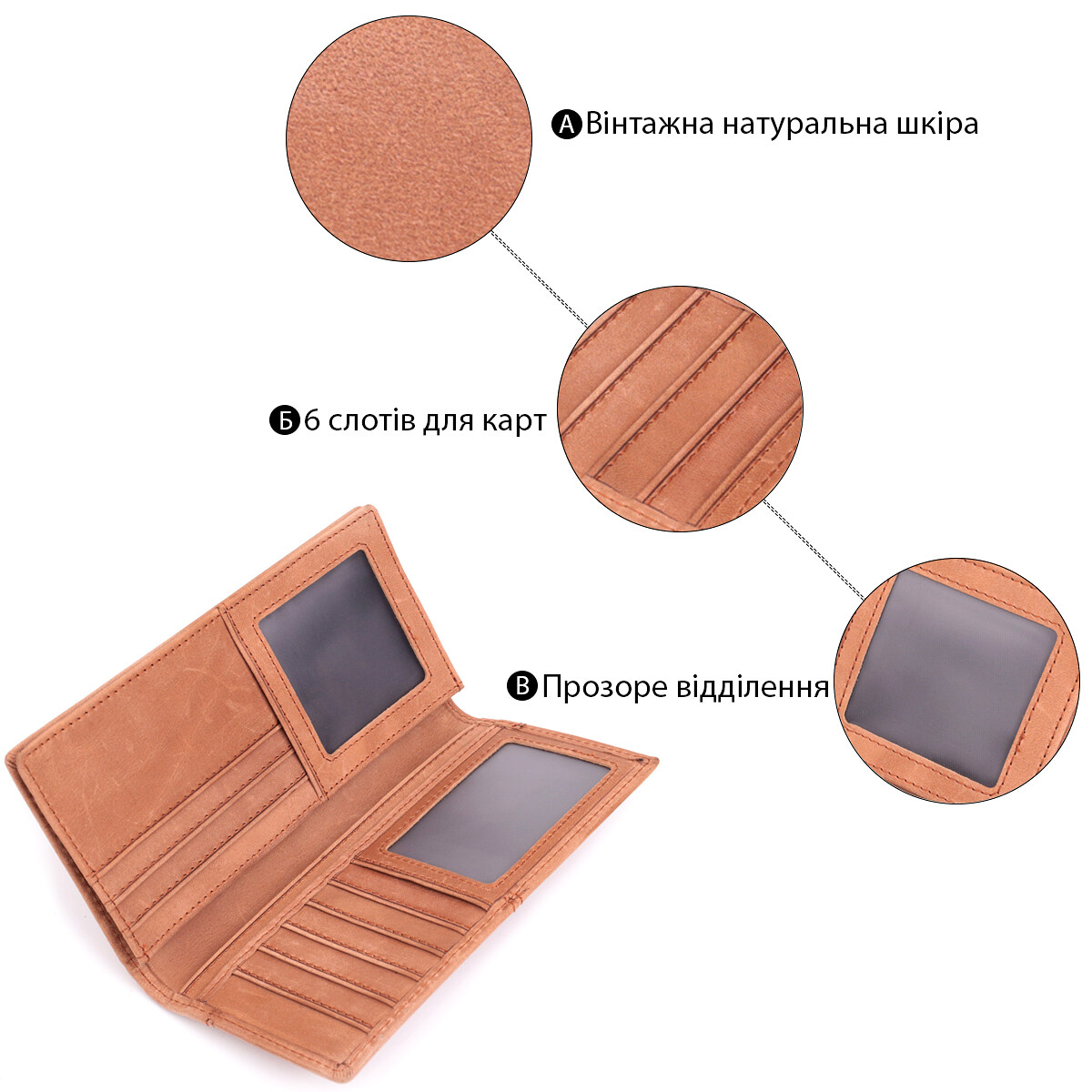 Стильный бумажник унисекс из качественной натуральной винтажной кожи, в красивом цвете. Модель имеет одну секцию для хранения купюр, которые не складываются при использовании аксессуара, шесть слотов для кредитных карточек, два кармана под пленкой, монетницу на молнии, а также два прилегающих кармана. Такой кошелек из винтажной благородной кожи - это идеальный вариант для тех, кто ценит качество, удобство и комфорт.
