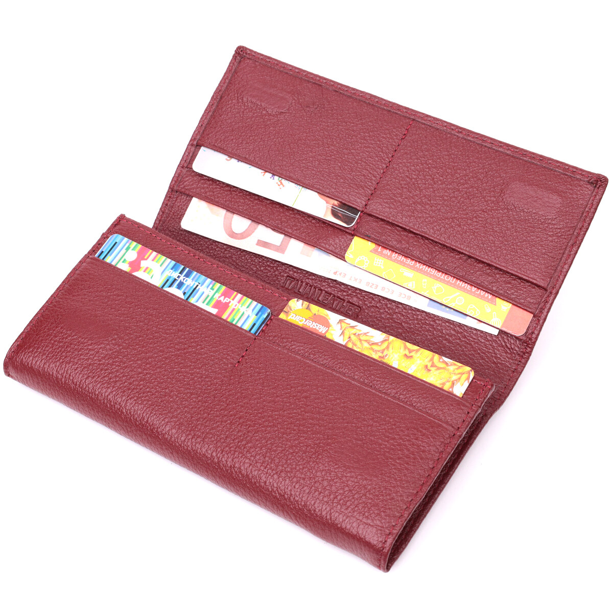 Отменное женское портмоне в два сложения из натуральной кожи высочайшего качества. Кожаное портмоне очень практичное и служит достаточно долго. Аксессуар состоит из четырех вместительных карманов для купюр, двух карманов на молниях через всю длину, восьми ячеек для пластиковых карт, скрытого кармана и наружного кармана на молнии, что отлично прослужит для монет. Портмоне дополнено надежной фурнитурой. Укомплектован кошелек в фирменную картонную коробку белого цвета.