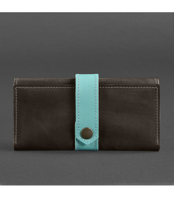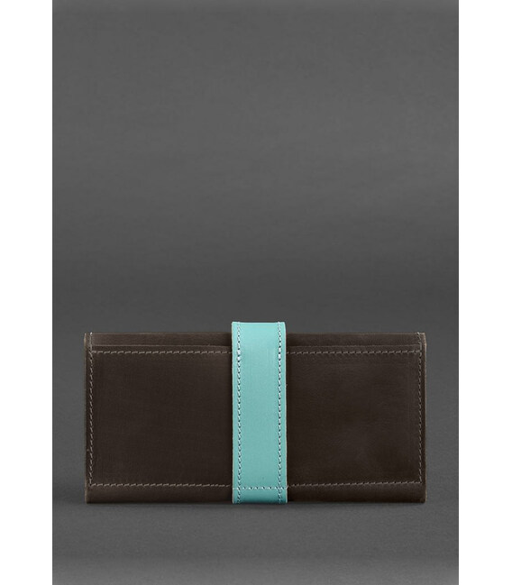 Кожаное женское портмоне 3.0 темно-коричневое с бирюзовым