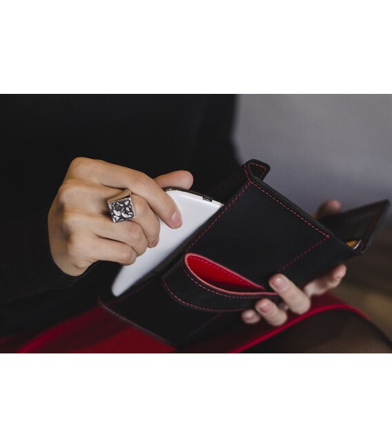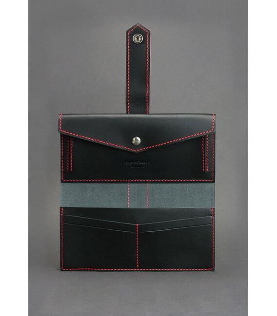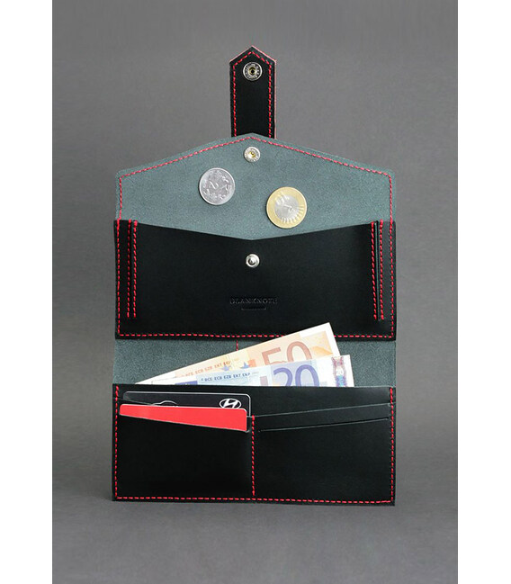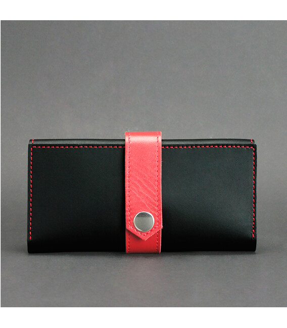 Кожаное женское портмоне 3.0 черное с красным