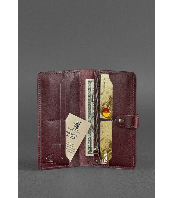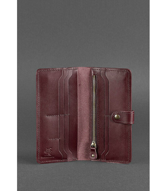 Портмоне в бордовом цвете гармонично сочетает строгость и женственность, изысканность и простоту. Такой аксессуар подойдет дамам, которые любят качественные и натуральные вещи. Это портмоне станет отличным хранителем для Ваших финансов и ярким акцентом Вашего образа.Портмоне ручной работы изготовлено из натуральной кожи краст. Эта кожа очень прочная и износостойкая, и также она не требует сложного дополнительного ухода.Но не только качеством порадует Вас эта модель, она еще и очень функциональна! Наши мастера тщательно подошли к вопросу организации внутреннего пространства и учли все нюансы и мелочи.Два просторных отделения позволят располагать купюры в полный рост. Имеется очень удобная монетница, которая закрывается на металлическую молнию. Для карточек предусмотрено 9 отделений и два маленьких отделения для мини-карт (брелоков).Закрывается портмоне на хлястик с кнопкой – удобно и красиво. Хотите проверить?Гарантия на портмоне - 3 года с момента покупки.Фурнитура и комплектация может быть изменена производителем