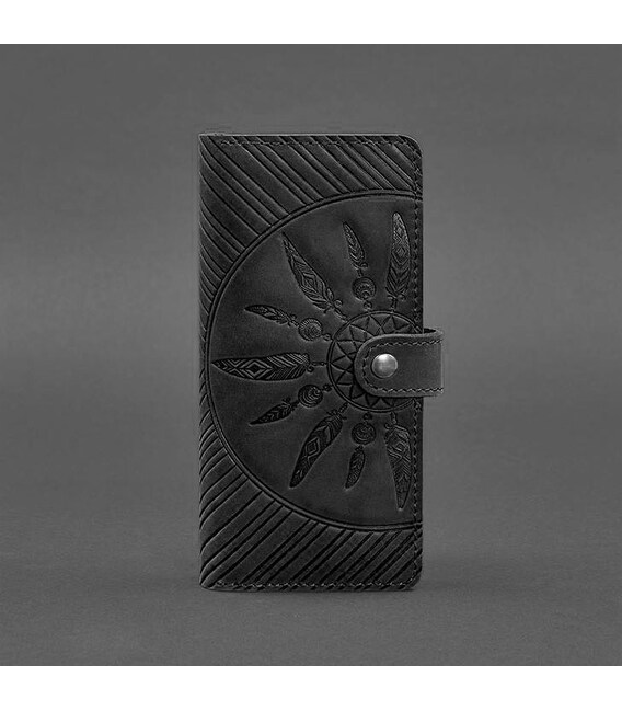 Портмоне «Инди» в Черном цвете подкупает оригинальным дизайном, высоким качеством и функциональностью.Оригинальное тиснение в виде ловца снов не только выглядит отлично, но и защитит Ваши деньги от быстрого расходования и необдуманных трат. Мы уверенны, что индейцы не зря наделяли этот талисман мощнейшими магическими свойствами.Портмоне изготовлено полностью вручную из натуральной кожи.Внутри имеется два отделения для купюр и просторное отделение для монет, которое закрывается на металлическую молнию. Для карточек и визиток предусмотрено девять кармашков и два дополнительных мини-кармана для карточек-брелоков.Мы уверены, что это стильное и удобное портмоне будет радовать Вас долгие годы! И в подтверждение своей уверенности мы даем гарантию на изделие.Гарантия на портмоне - 3 года с момента покупки.ВНИМАНИЕ! Выделка данной кожи предполагает естественное появление на ней царапин и потертостей в ходе использования! От этого изделие становится более индивидуальным и приятным, это оценят настоящие поклонники винтажного стиля:) А так же первое время кожа может краситься при сильном трении об другие предметы - это особенность её выделки, постепенно этот эффект уменьшается, кожа полируется и приобретает чуть глянцевый эффект.Фурнитура и комплектация может быть изменена производителем