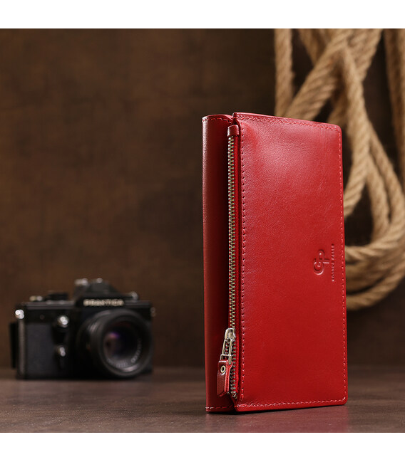 Описание Кожаное вместительно женское портмоне GRANDE PELLE 11550 Красный