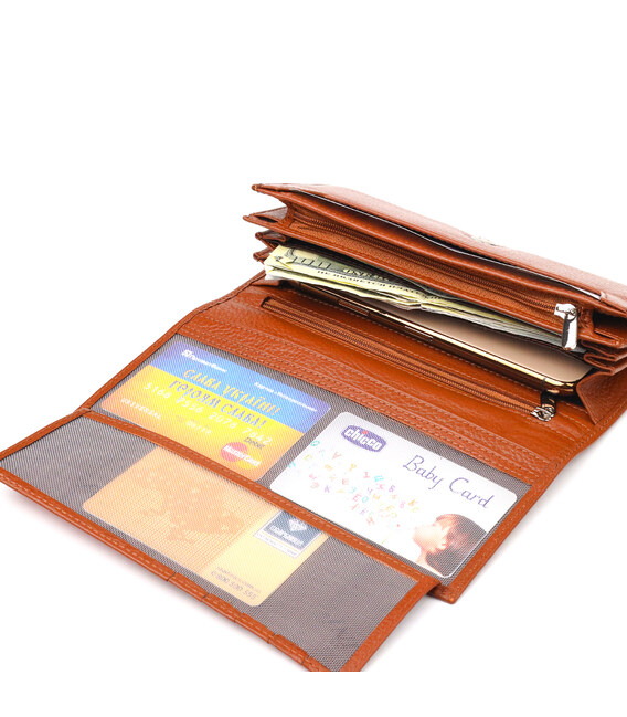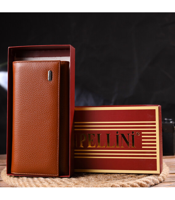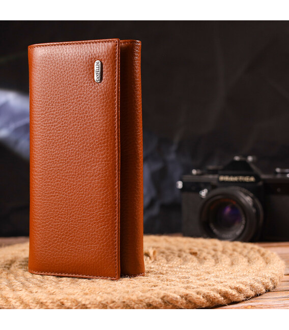 Описание Вместительное женское портмоне с монетницей из натуральной кожи CANPELLINI 21524 Светло-коричневое