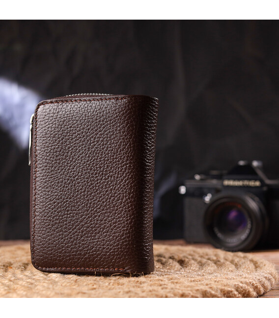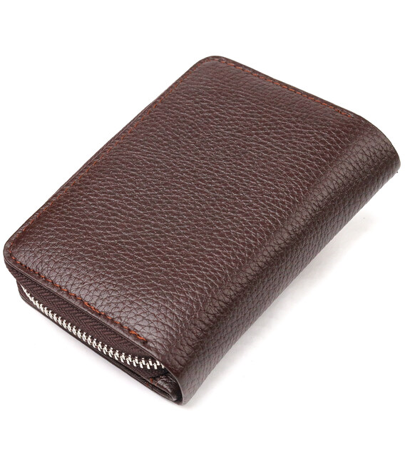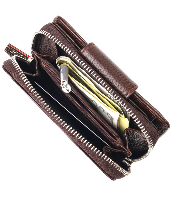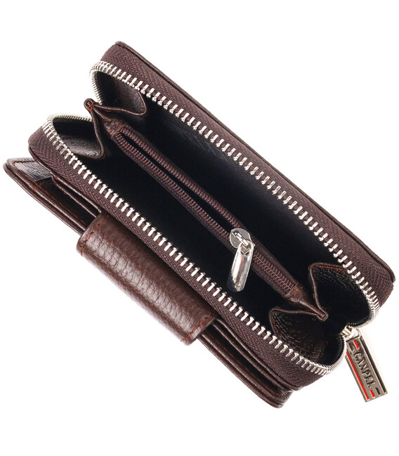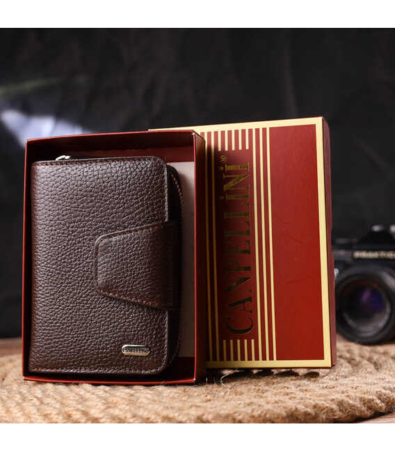 Описание Красивое вертикальное портмоне для женщин с монетницей на молнии из натуральной кожи флотар CANPELLINI 21600 Коричневое