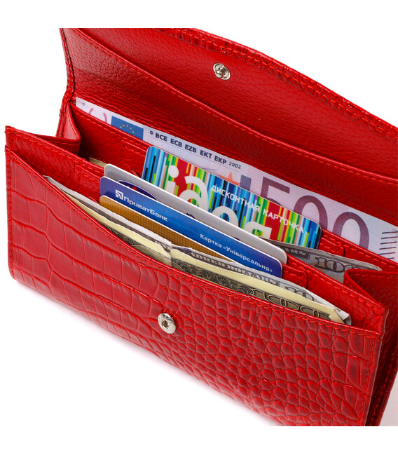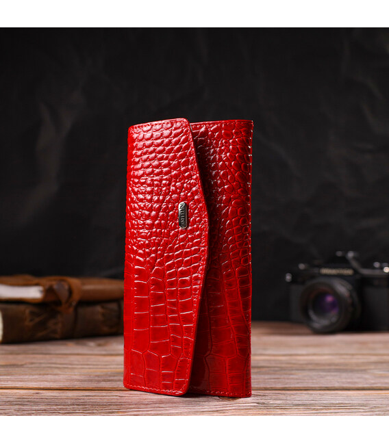 Описание Привлекательное женское портмоне из натуральной кожи с тиснением под змею CANPELLINI 21699 Красный