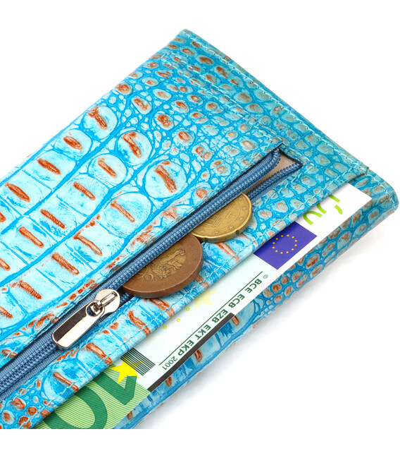 Описание Превосходное портмоне для женщин из натуральной кожи с тиснением под крокодила CANPELLINI 21703 Голубое