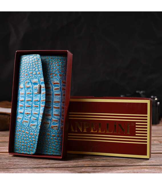 Превосходное портмоне для женщин из натуральной кожи с тиснением под крокодила CANPELLINI 21703 Голубое