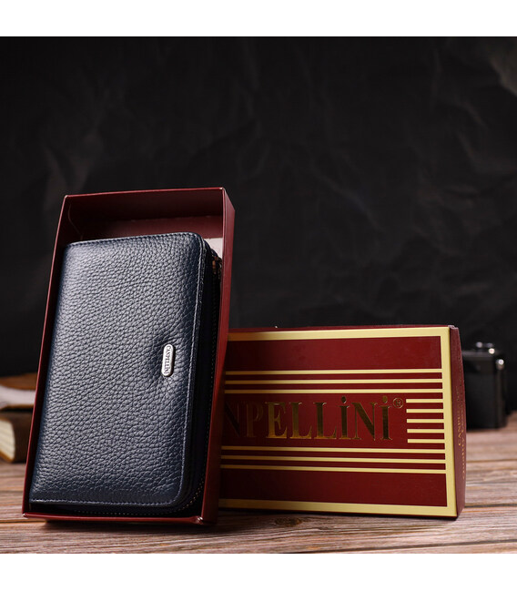 Описание Практичное женское портмоне среднего размера из натуральной кожи CANPELLINI 21715 Синее
