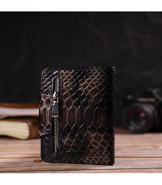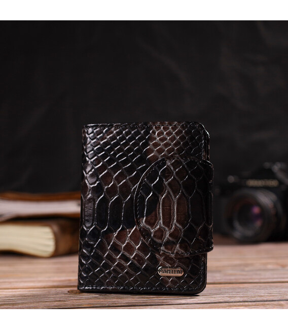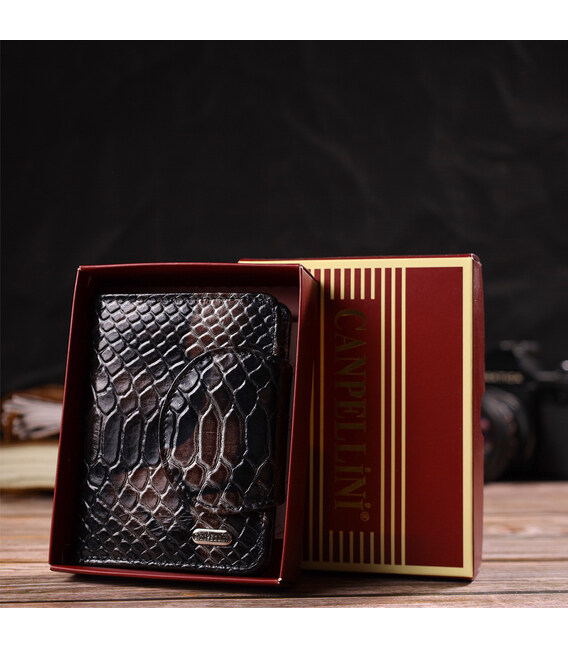 Описание Фактурное женское портмоне среднего размера из натуральной кожи с тиснением под змею CANPELLINI 21805 Разноцветное
