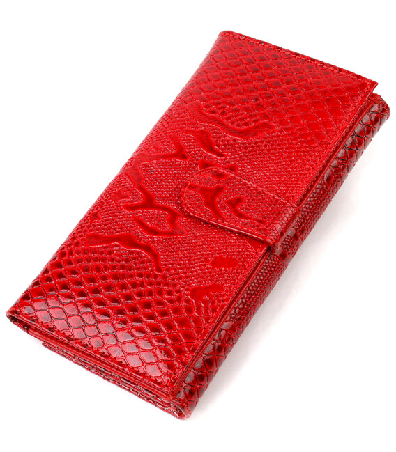 Лакированное женское портмоне из натуральной кожи с тиснением под змею CANPELLINI 21850 Красный