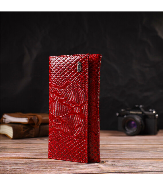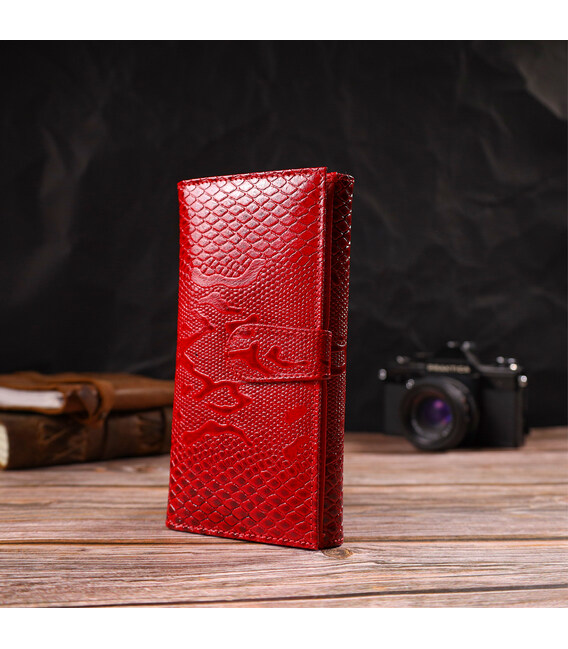 Описание Лакированное женское портмоне из натуральной кожи с тиснением под змею CANPELLINI 21850 Красный