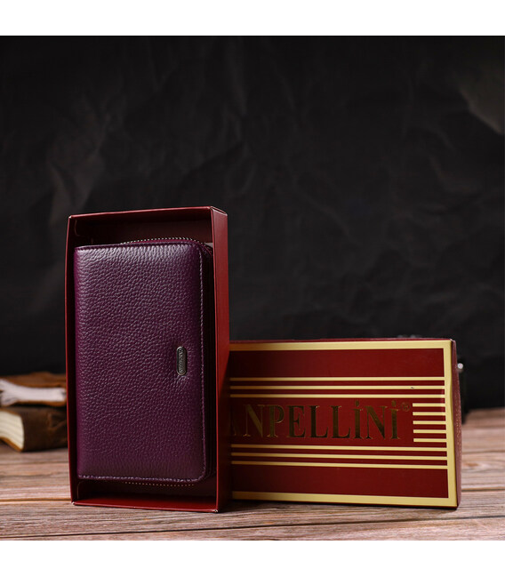 Описание Яркое женское портмоне среднего размера из натуральной зернистой кожи CANPELLINI 21909 Сиреневое