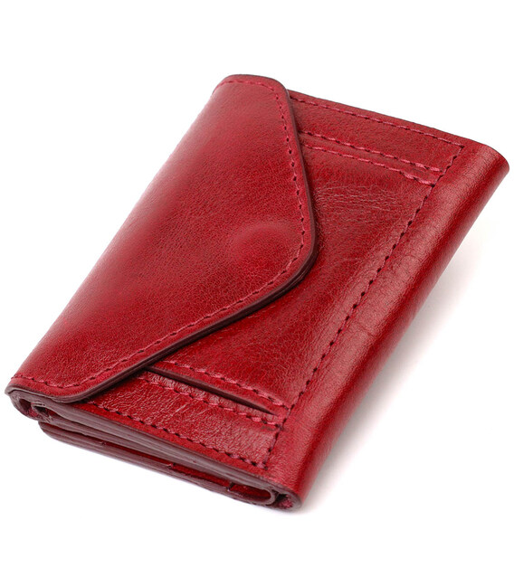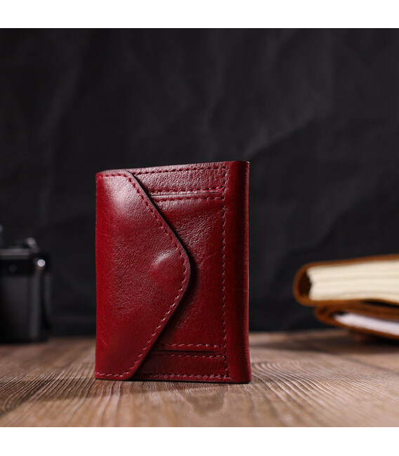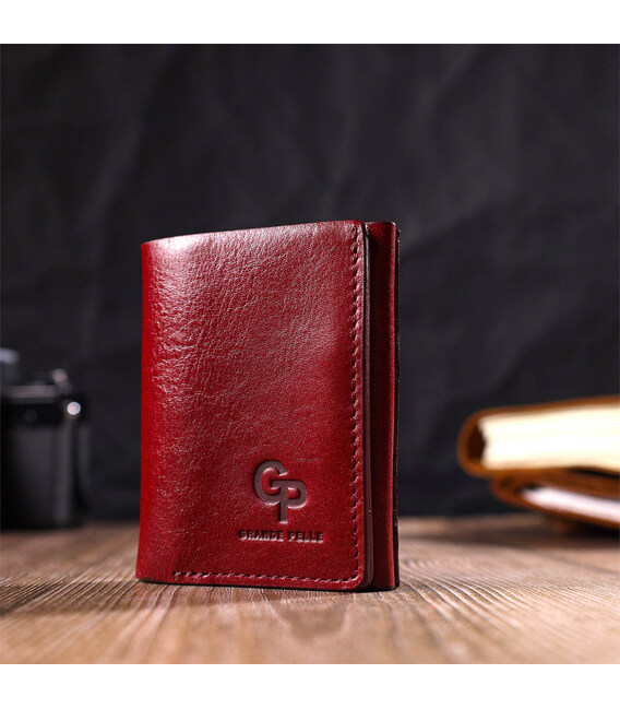 Описание Компактное женское портмоне в три сложения GRANDE PELLE 16788 Бордовый