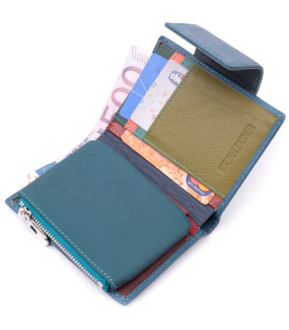 Описание Портмоне для женщин с оригинальной монетницей из натуральной кожи ST Leather 19450 Бирюзовый