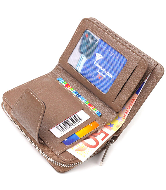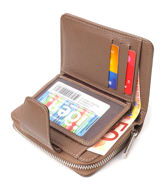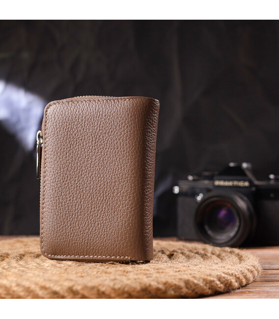 Описание Надежное вертикальное портмоне для женщин с монетницей на молнии из натуральной кожи флотар CANPELLINI 21606 Бежевое