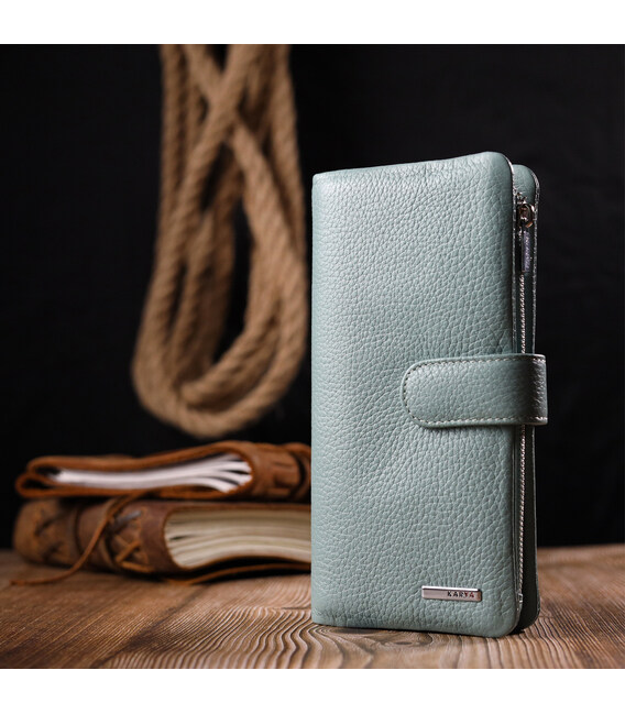 Описание Интересное женское портмоне из натуральной кожи KARYA 21000 Серо-голубой