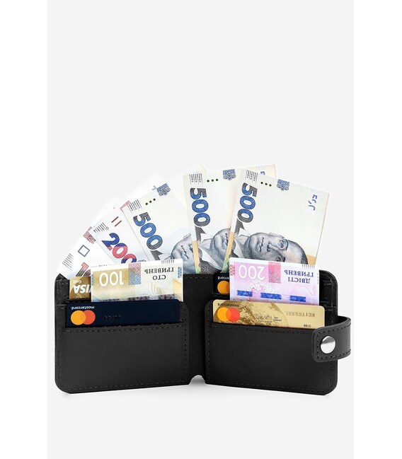 Размер: 9.5х11.5Метериал: кожаЗастегивается на кнопкуВнутри: - 4 отделения для карточек - 1 отделение для купюрФурнитура: металлическая, цвет никель или антикДополнительно можно сделать монетницу на молнии (+250 грн.)