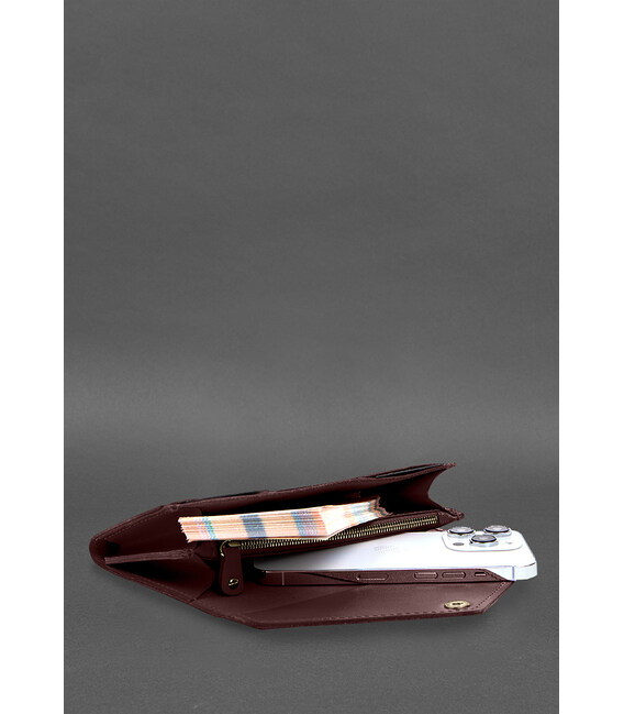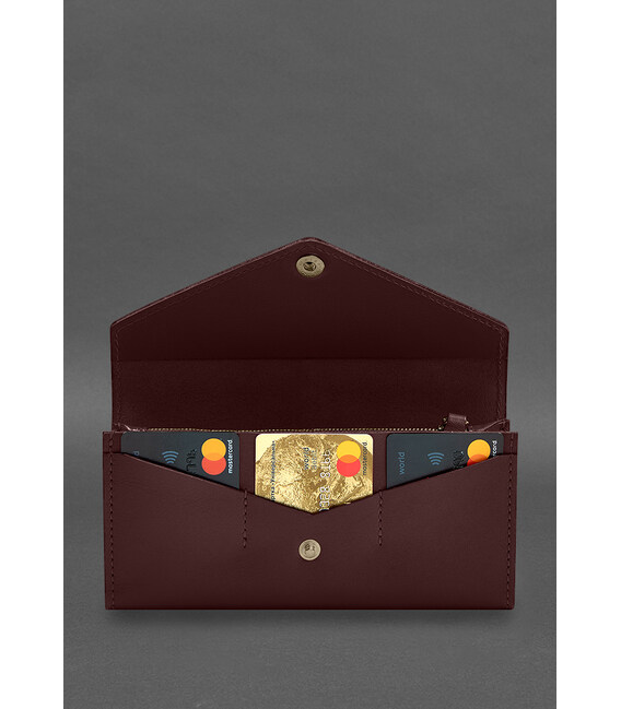 Кожаный клатч (портмоне) на кнопке 5.0 Бордовый
