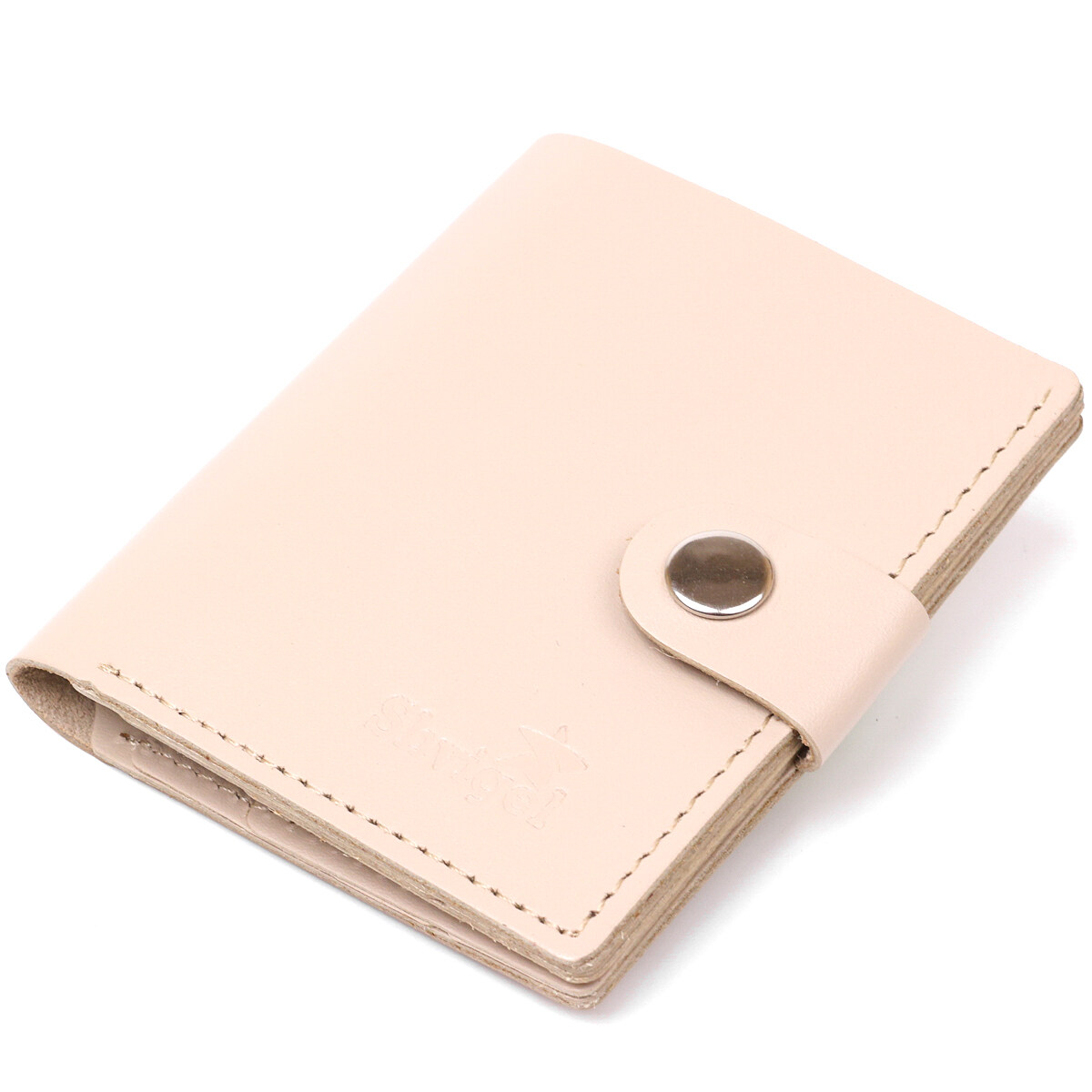 Отличное портмоне в лаконичном дизайне от украинского производителя. Материал – натуральная кожа с улучшенными показателями прочности и износостойкости. Внутри есть вместительно отделение для купюр, слоты для пластиковых карточек и небольшая монетница на кнопке. Закрывается данная модель на хлястик с кнопкой.