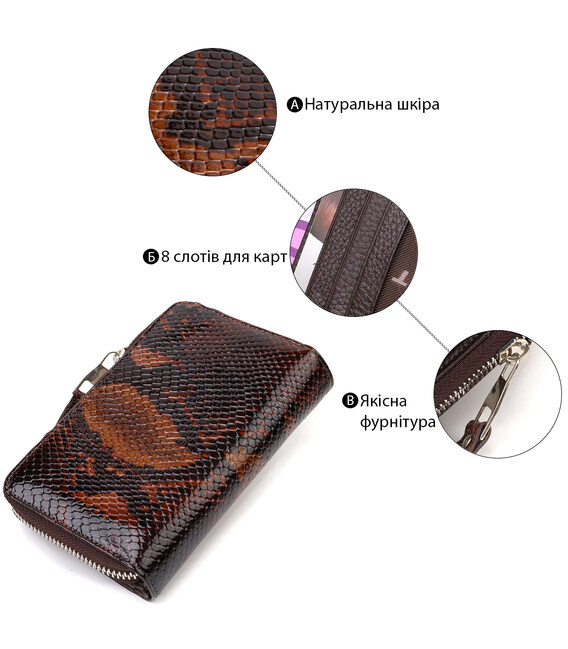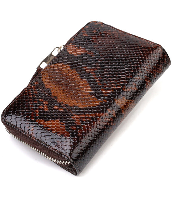 Описание Отличное лакированное женское портмоне среднего размера из натуральной кожи с тиснением под змею CANPELLINI 21714 Разноцветное