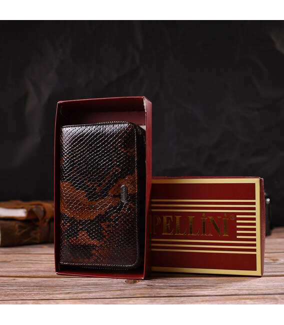 Отличное лакированное женское портмоне среднего размера из натуральной кожи с тиснением под змею CANPELLINI 21714 Разноцветное