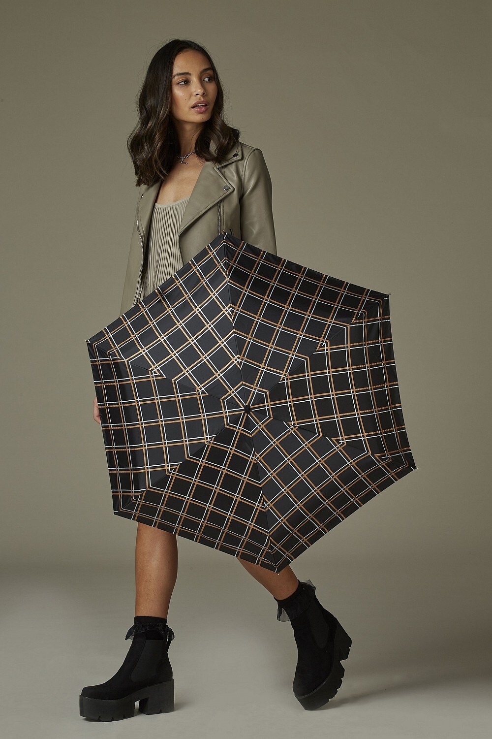 Мини зонт женский Fulton Tiny-2 L501 Golden Check (Золотая Клетка) фото, картинка, изображение
