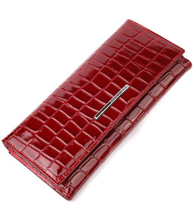 Чудовий жіночий гаманець з натуральної лакованої шкіри з тисненням під крокодила KARYA 21127 Червоний
