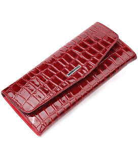 Красивий жіночий гаманець з клапаном із фактурної шкіри під крокодила KARYA 21115 Червоний
