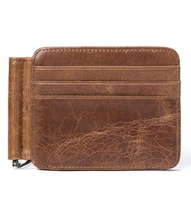 Практичний чоловічий затиск із фактурної шкіри під рептилію KARYA 21050 Коричневий