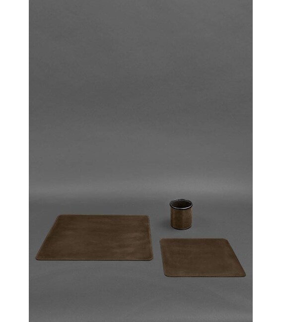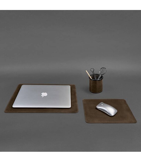 Килимок під ноутбук захистить поверхню будь-якого столу від подряпин і потертостей, які можуть з'являтися в процесі роботи. Шкіряний килимок для мишки збільшує точність наведення курсора, покращує ковзання і запобігає появі подряпин на нижній частині корпусу пристрою, а також на столі. Шкіряний стаканчик, призначений для зберігання олівців, різних ручок і іншого канцелярського приладдя.