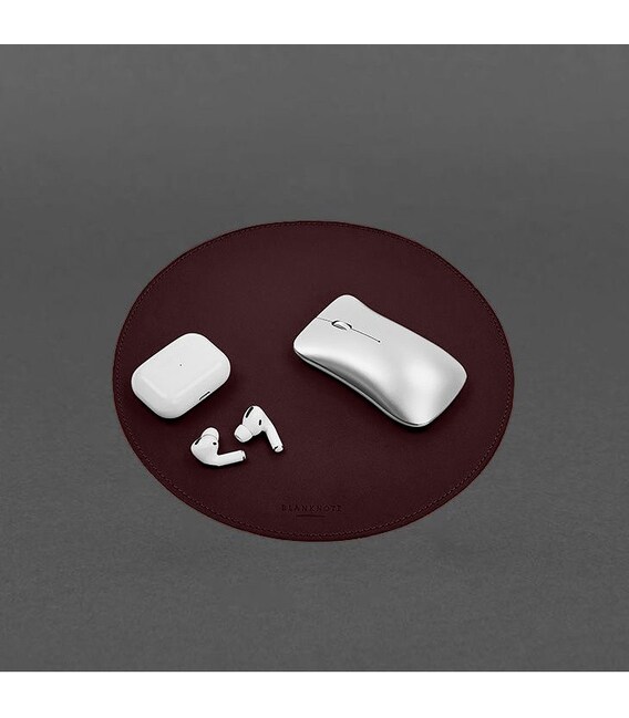 Детальніше Круглий килимок для мишки з натуральної шкіри бордовий краст