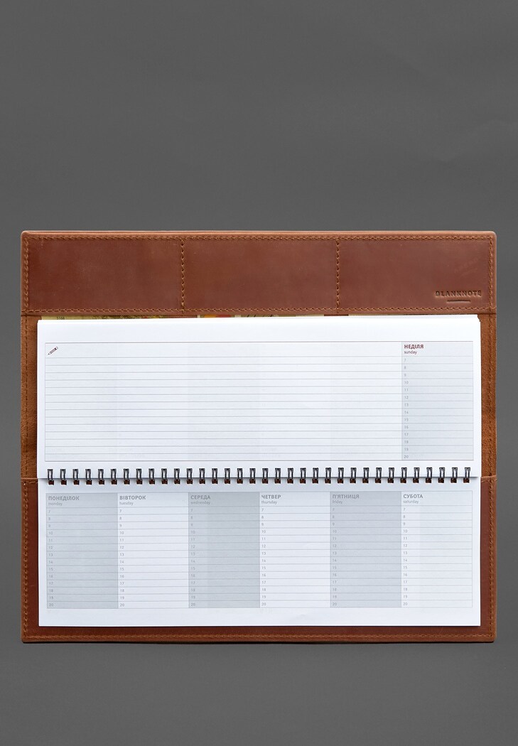 Планер виготовлено вручну з високоякісної натуральної шкіри Crazy Horse. Ця шкіра відома своєю міцністю, приємною на дотик текстурою та унікальною патиною, яка з часом стає ще привабливішою. Ручна робота додає планеру індивідуальності та робить його неповторним.