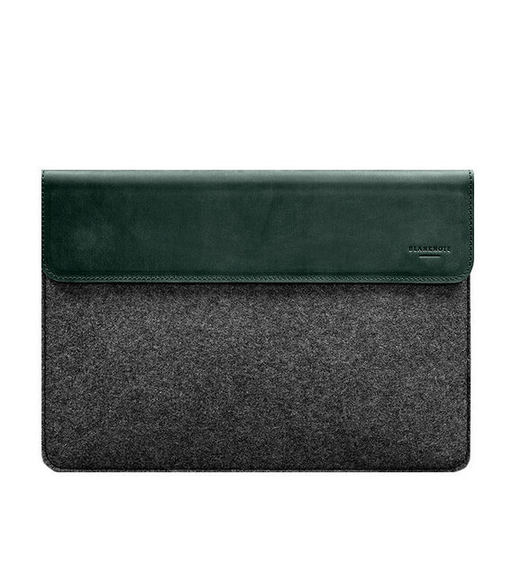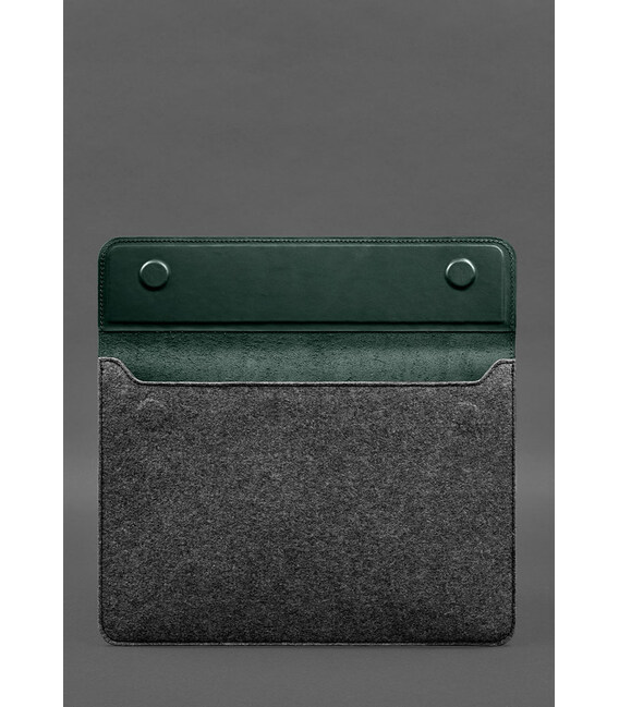 Чохол-конверт із клапаном шкіра+фетр для MacBook 14" Зелений Crazy Horse
