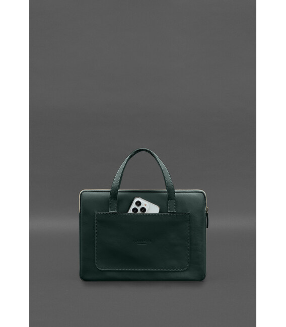 Шкіряний чохол (сумка) з ручками для ноутбука 13 дюйм Зелений