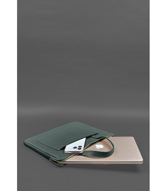 Детальніше Шкіряний чохол (сумка) з ручками для ноутбука 13 дюйм Зелений