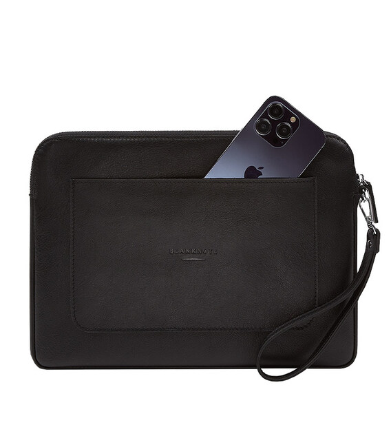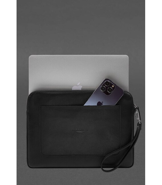 Шкіряний чохол для ноутбука на блискавці з кишенею та петлею на руку Чорний
