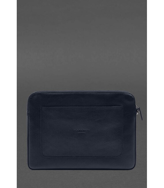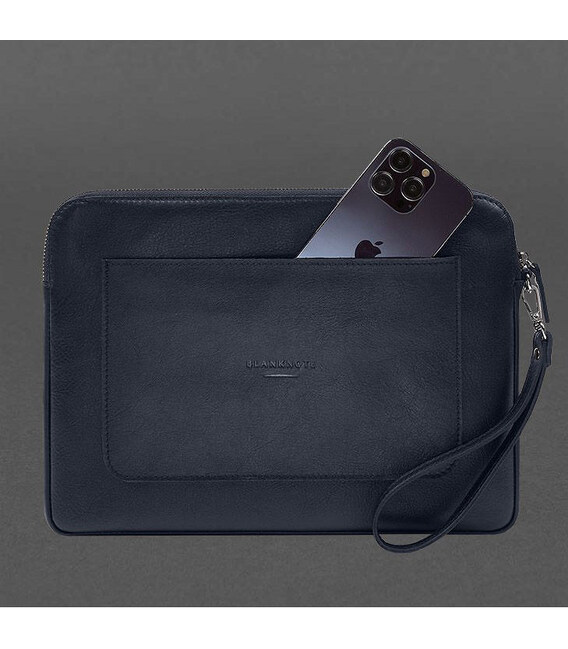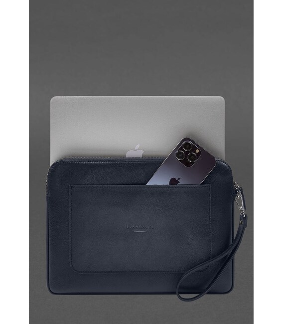 Шкіряний чохол для ноутбука на блискавці з кишенею та петлею на руку Синій