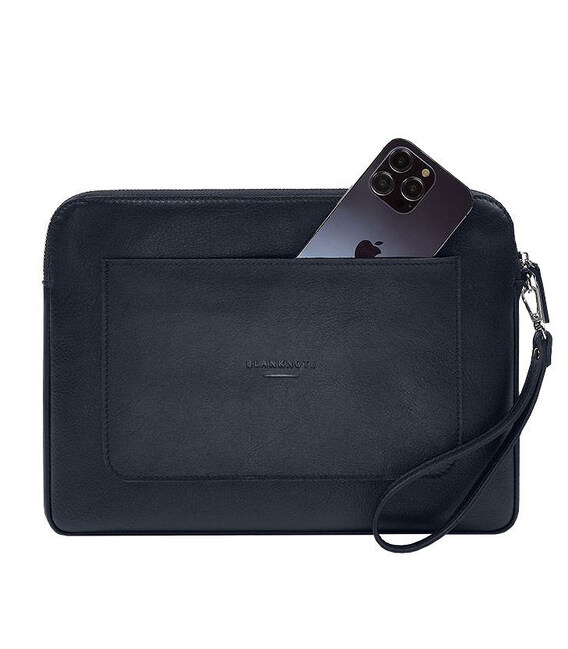 Детальніше Шкіряний чохол для ноутбука на блискавці з кишенею та петлею на руку Синій