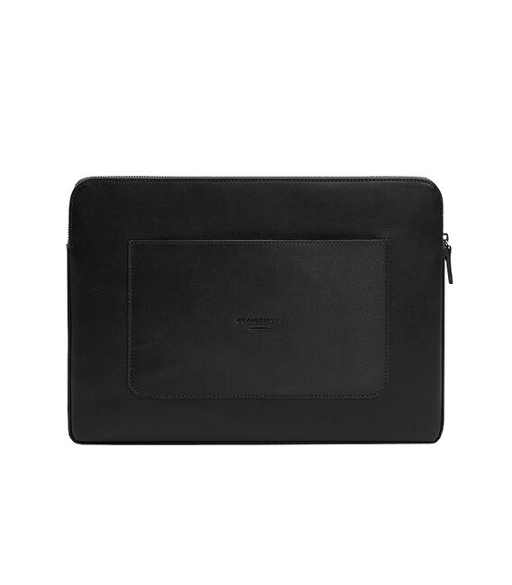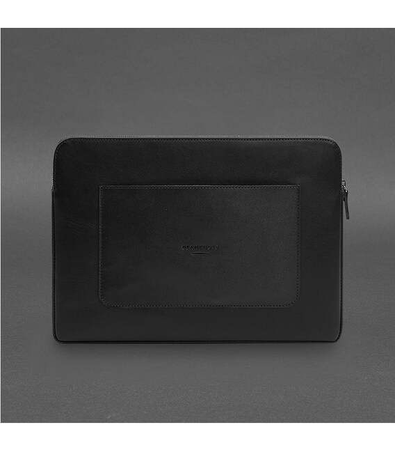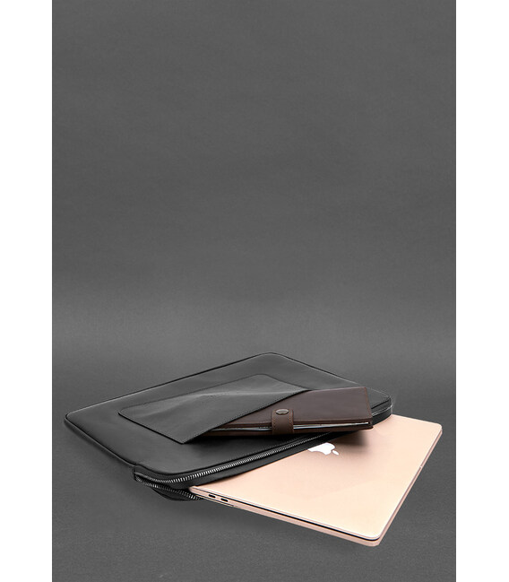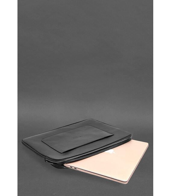 Шкіряний чохол для ноутбука на блискавці з хлястиком та кишенею Чорний