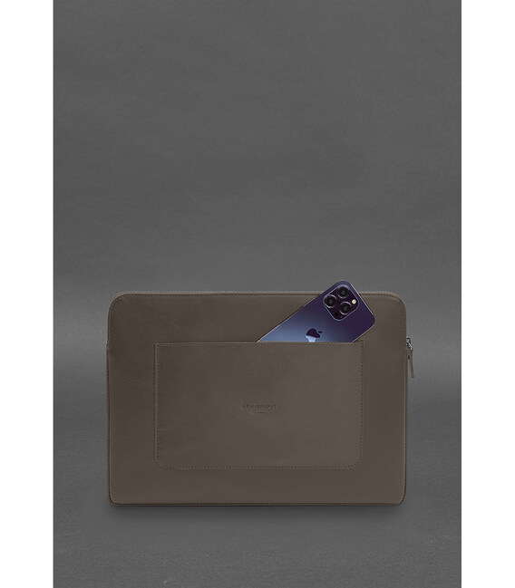 Детальніше Шкіряний чохол для ноутбука на блискавці з хлястиком та кишенею Темно-бежевий