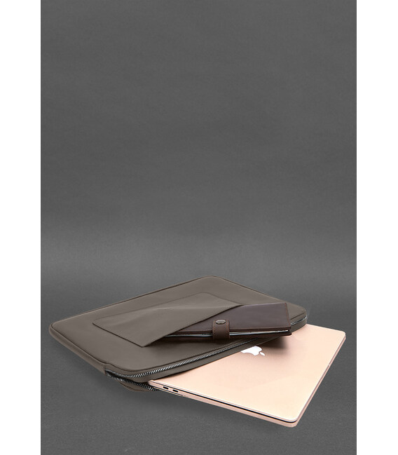Шкіряний чохол для ноутбука на блискавці з хлястиком та кишенею Темно-бежевий