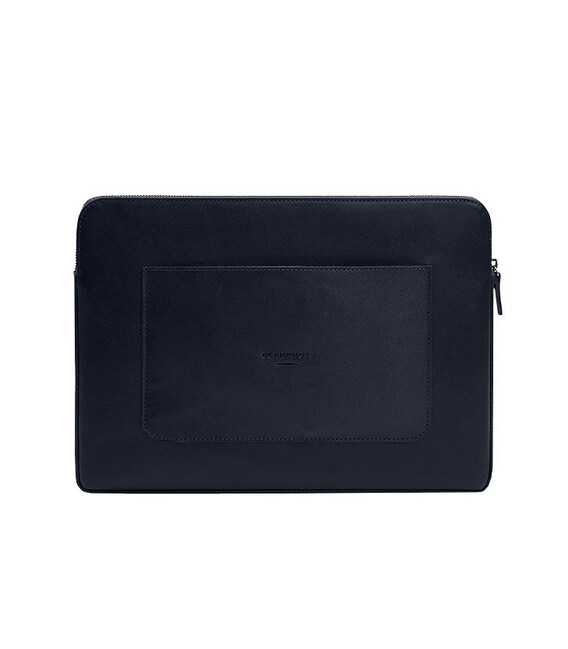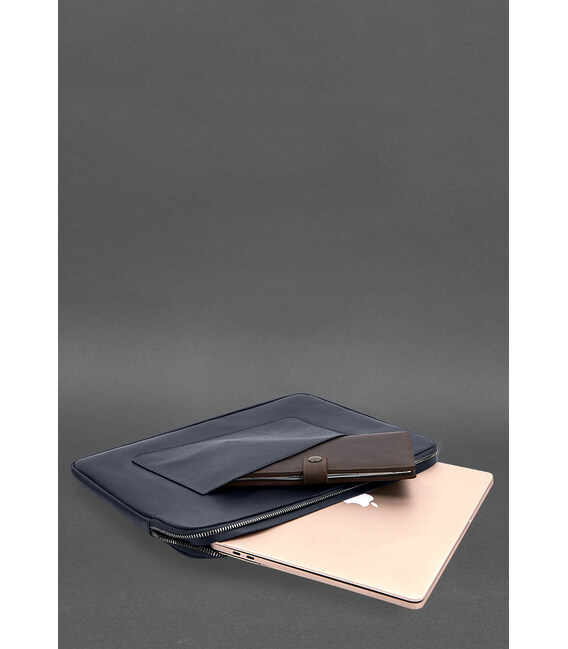 Шкіряний чохол для ноутбука на блискавці з хлястиком та кишенею Синій